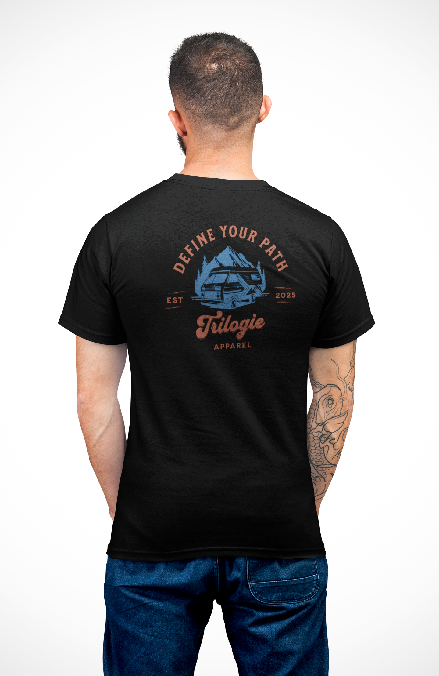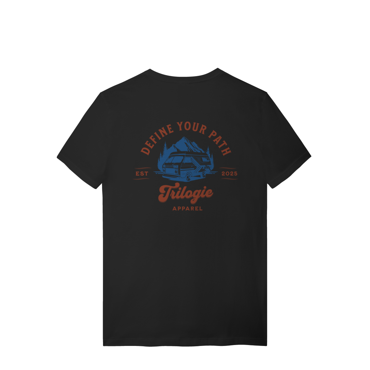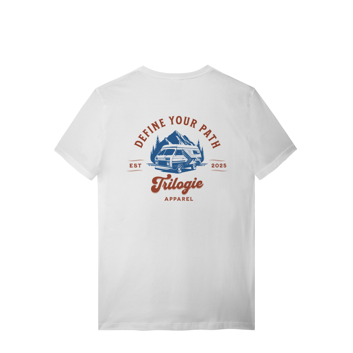 Nas costas, estampa marcante e exclusiva com a frase "Define Your Path"  — um convite para traçar o seu próprio caminho. A arte de um trailer diante das montanhas reforça o espírito aventureiro da peça, enquanto o logo discreto minimalista no peito garante estilo no dia a dia.