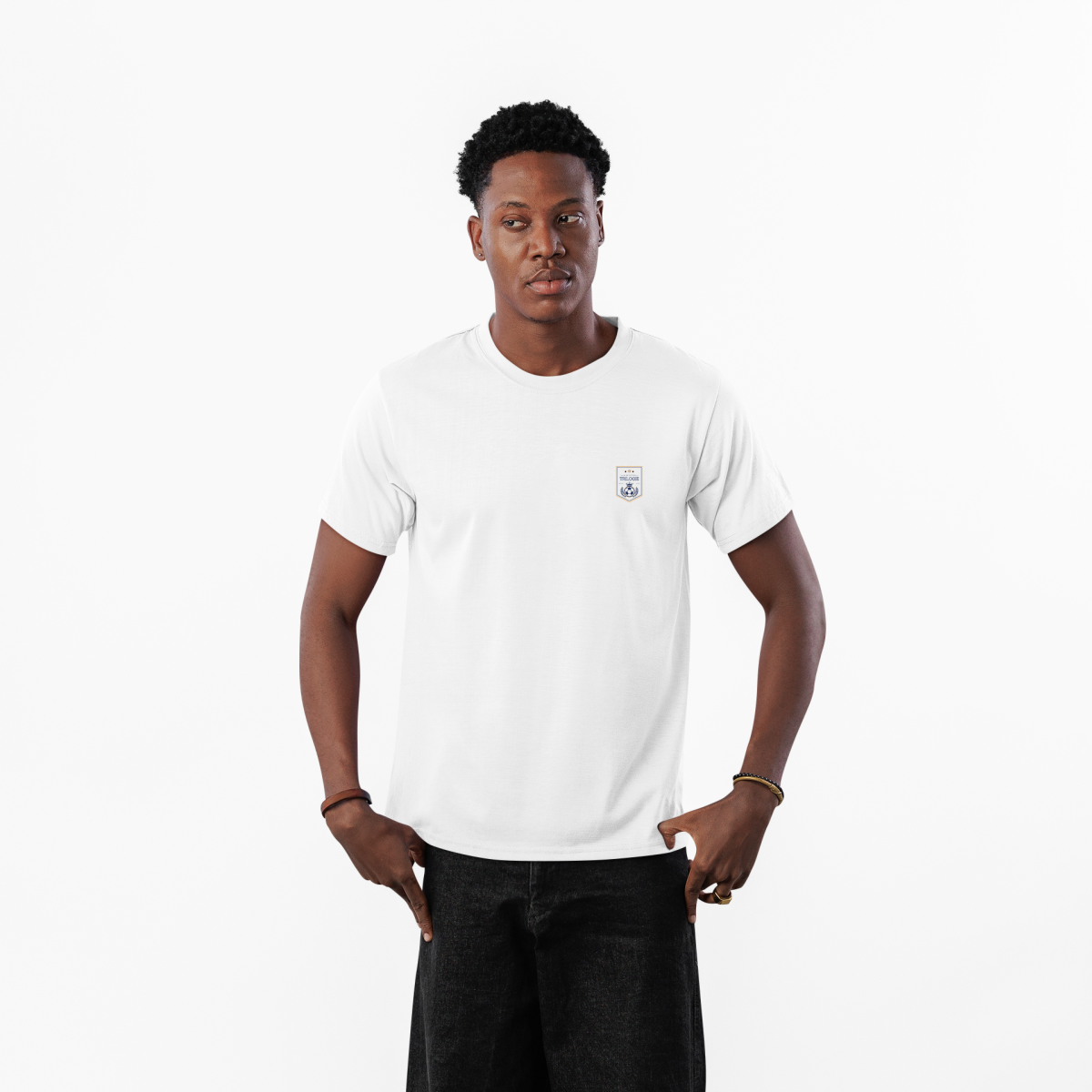 Sua estampa imponente nas costas reúne os elementos que celebram o futebol: a palavra FOOTBALLEUR, o número 10, o jogador em ação, acompanhados da assinatura Trilogie Apparel e o logo da marca, compondo um visual marcante e cheio de atitude que representa a essência do jogo bonito. Na frente, o design minimalista traz o escudo inspirado nos clubes de futebol, com o brasão exclusivo da Trilogie Apparel, adicionando autenticidade e sofistifação para a peça, e reforçando a identidade esportiva e exclusiva da marca.