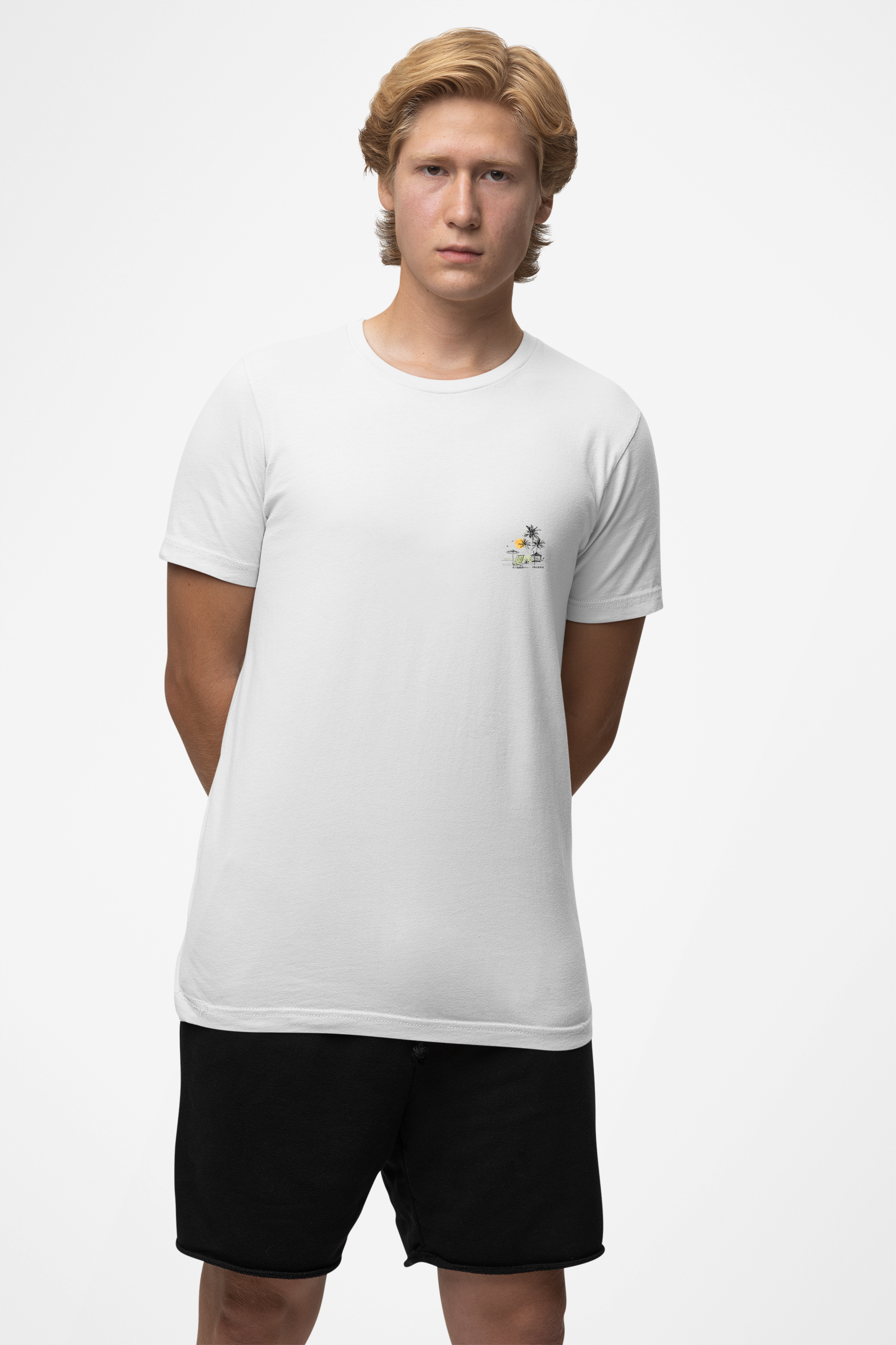 A nossa Camiseta Hidden Paradise, confeccionada em 100% algodão, tem toque macio, leve e um caimento confortável. Sua estampa nas costas com cenário de praia paradisíaca, coqueiros, sol ao fundo e a frase “Hidden Paradise”, transmite um clima tropical e relaxante, combinado com um toque de escapismo e liberdade que remetem à tranquilidade à beira-mar. No peito, a peça conta com uma miniatura da mesma estampa.
